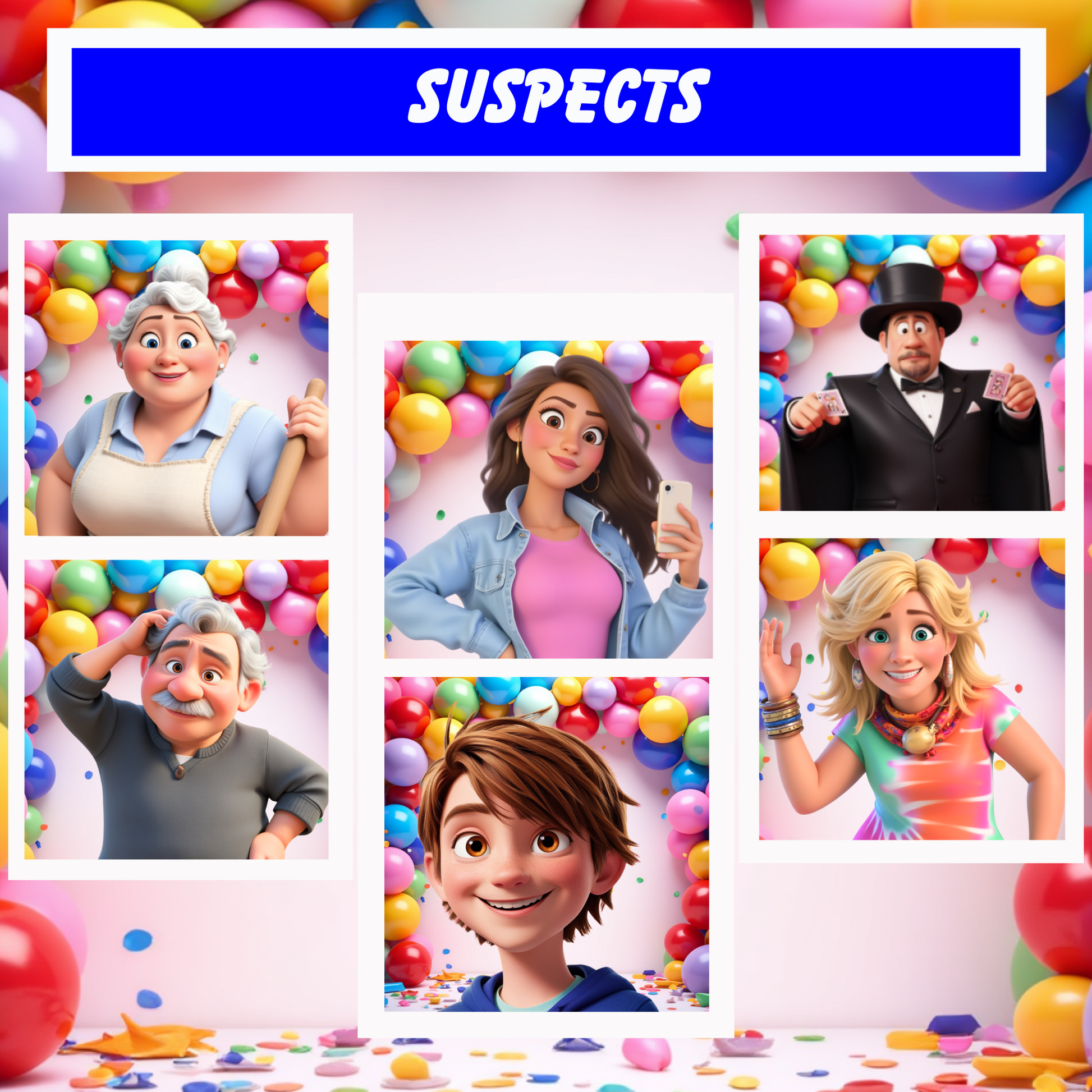 The birthday cake is missing?! The party is about to start, but someone has swiped the cake—and all the clues point to one of six sneaky suspects! Work against the clock to crack codes, solve puzzles, and uncover hidden clues in this birthday escape room game that turns any celebration into a thrilling mystery. Every challenge you solve brings you closer to revealing the culprit and saving the party before time runs out. Will you uncover the truth before the candles melt?